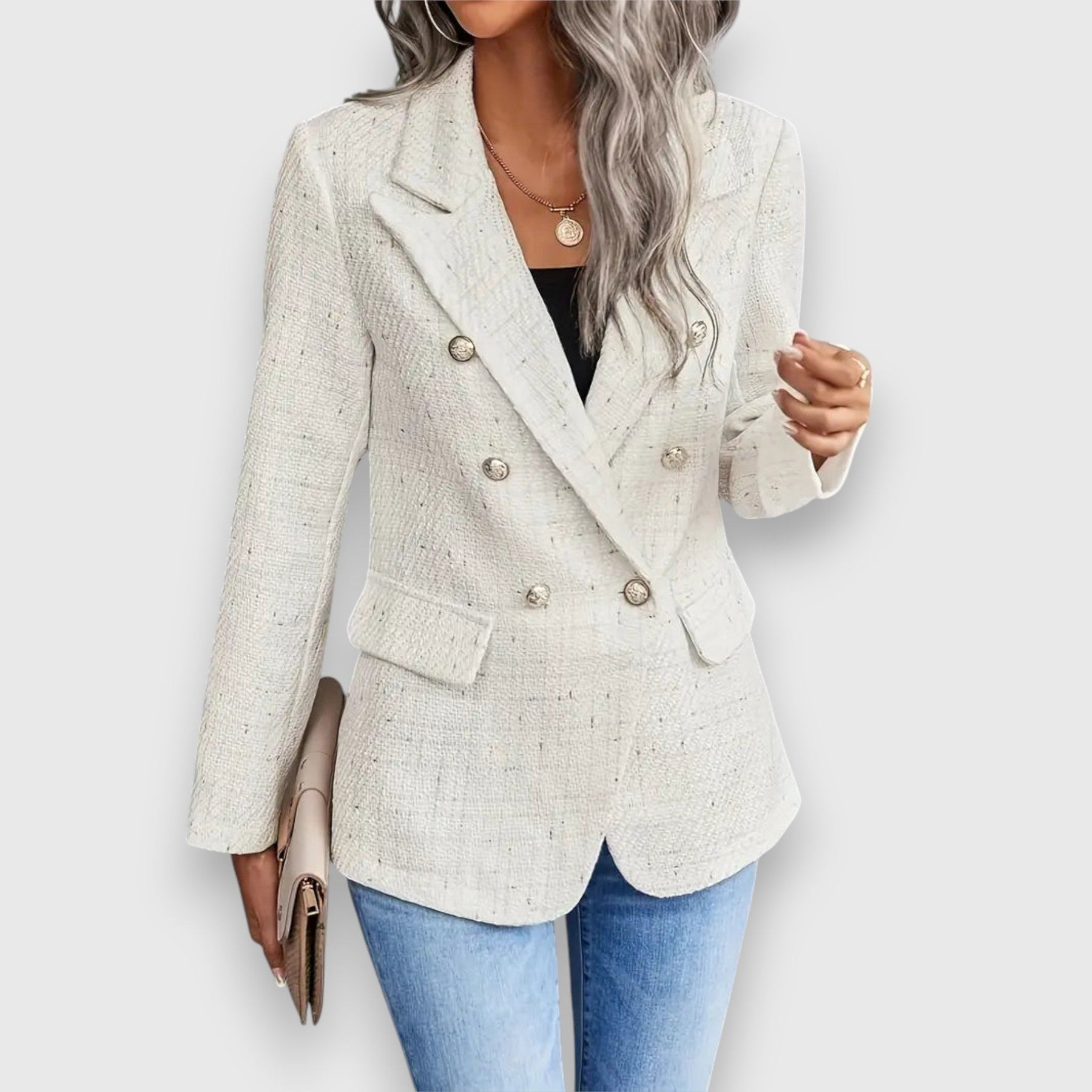 Kaïa's tweed blazer combines timeless elegance with modern chic, making it the perfect choice for warm spring days and summer evenings. Thanks to its lightweight material and flattering cut, it stylishly completes any outfit.